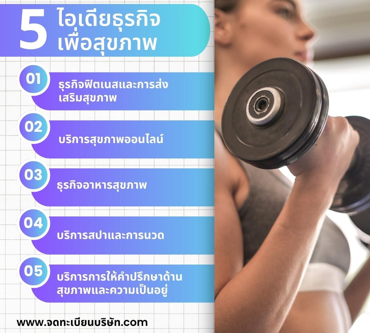 เมื่อพูดถึงไอเดียธุรกิจเพื่อสุขภาพ มีทางเลือกหลายอย่างที่คุณสามารถสร้างธุรกิจที่มีความเกี่ยวข้องกับสุขภาพและควบคุมร่างกายได้ นี่คือห้าไอเดียที่คุณอาจสนใจ