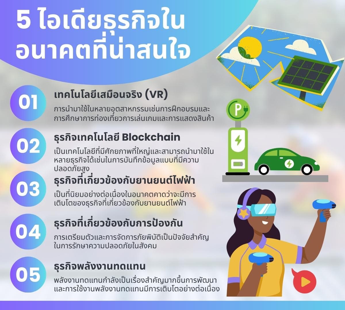 เมื่อพูดถึงไอเดียธุรกิจในอนาคต มีหลายแนวทางและศักยภาพที่น่าสนใจ ฉะนั้นนี่คือห้าไอเดียธุรกิจที่มีศักยภาพในอนาคตที่คุณอาจสนใจ