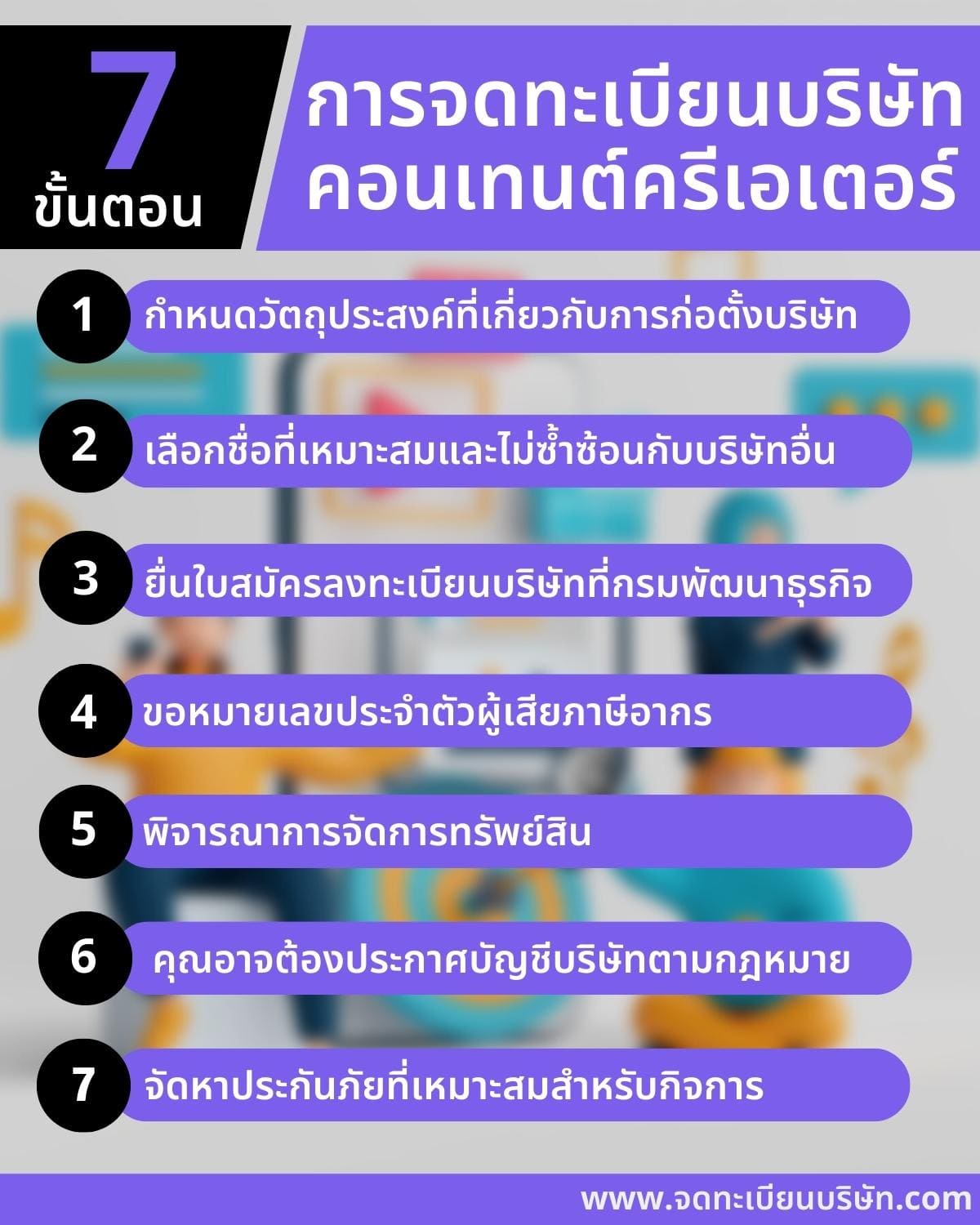 หากคุณต้องการจดทะเบียนบริษัทคอนเทนต์ครีเอเตอร์ คุณต้องทำขั้นตอนต่อไปนี้
