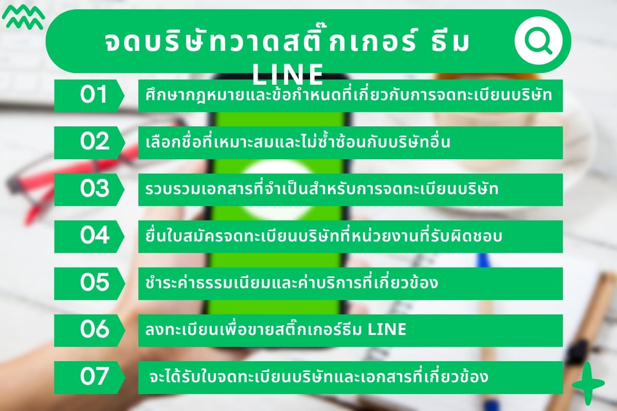 เพื่อจดทะเบียนบริษัทวาดสติ๊กเกอร์ธีม LINE ขายในประเทศไทย คุณจะต้องปฏิบัติตามขั้นตอนดังนี้