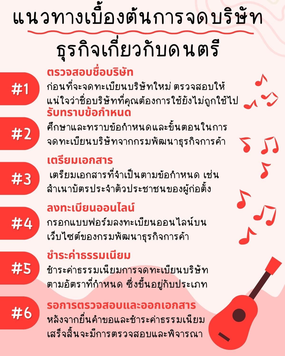 การจดทะเบียนบริษัทธุรกิจเกี่ยวกับดนตรีในประเทศไทยต้องทำตามขั้นตอนดังนี้