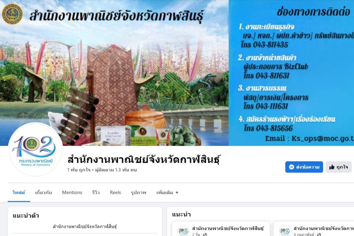 • สำนักงานพาณิชย์จังหวัดกาฬสินธุ์ 3/3 ถ.บายพาสทุ่งมน ต.กาฬสินธุ์ อ.เมือง จ.กาฬสินธุ์ 46000 โทร. 0 4381 1435 โทรสาร. 0 4381 1431 kalasin@dbd.go.th.